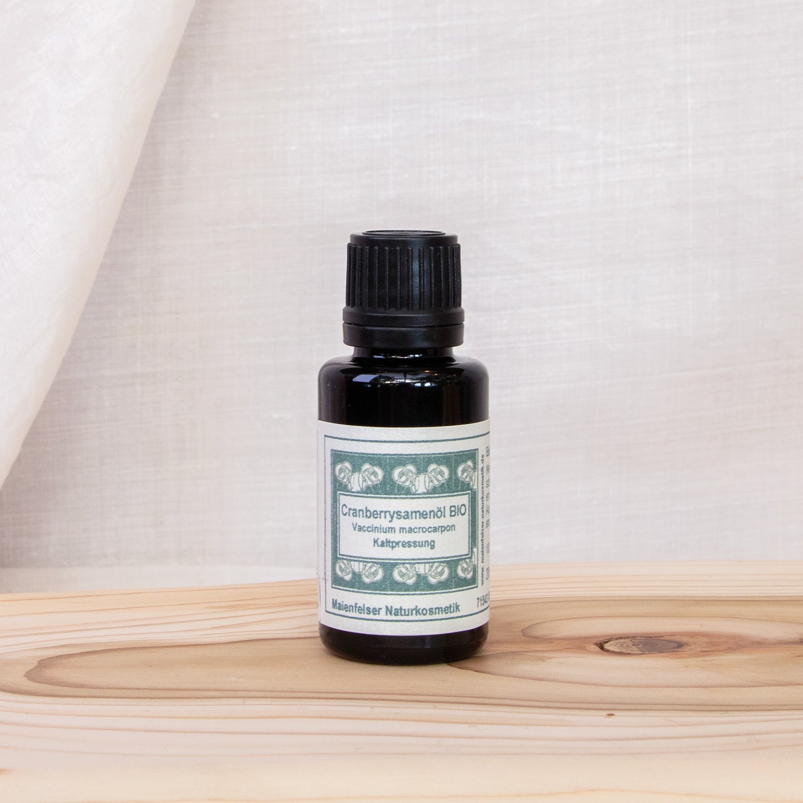 Die Cranberry (Kranbeere) wächst als kleiner, grüner Strauch vorwiegend in den nordischen Ländern, Nordamerika und Kanada. Die roten Beeren enthalten Luftkammern, so dass man bei der Ernte das ganze Gebiet mit Wasser überflutet und sie dann problemlos abschöpfen kann, da die Beeren an der Oberfläche treiben. Aus den Kernen der Früchte wird das hochwertige Beeren-Samenöl gepresst, das mit einigen Besonderheiten aufwartet. Das Fettsäureverhältnis zeigt ein ausgewogenes Verhältnis, wie es in dieser Anordnung höchst selten vorkommt. Die Bedeutung von Omega-3-Fettsäuren (Alpha-Linolensäure) hat erst in jüngster Zeit zugenommen, da die heutigen Ernährungsgewohnheiten einen deutlichen Überhang von Omega-6-Fettsäuren (gamma-Linolensäure) verzeichnen und der Anteil an der lebenswichtigen Omega-3-Fettsäure oftmals viel zu niedrig ist. Weiterhin wäre der hohe Anteil an Tocopherolen, da vor allem das a-Tocotrienol, erwähnenswert, die Vorstufe zu den Vitaminen A und E, sie gewähren dem Cranberryöl eine hohe antioxidative Stabilität, was das Öl lange haltbar macht.