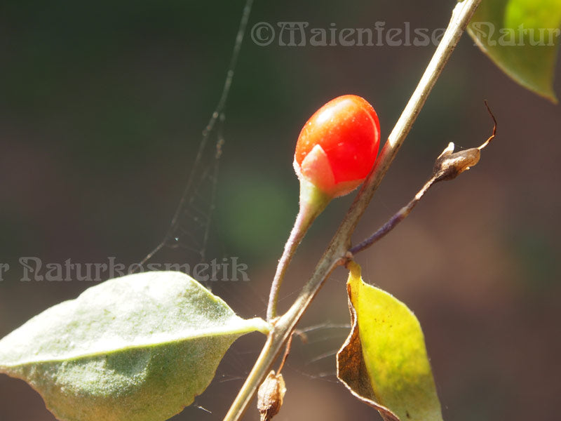 Nun, die rote Gojibeere hat ja inzwischen einen wahren Siegeszug hinter sich. Über Tibet und China ist sie inzwischen auch bei uns häufig anzutreffen. Die Chinesische Wolfsbeere ist ein grüner Strauch mit stacheligen herabhängenden Ästen, an denen sich ab August bis Oktober leuchtend rote bis orangefarbige, bis 1 cm große eiförmige Früchte befinden. In dieser wohlschmeckenden Frucht sind ca. 5 bis 20 braungelbe runde Kerne (Samen). Die ganze Frucht und auch die Kerne enthalten eine große Vielzahl an wertvollen Vitaminen, Mineralstoffen und sekundären Pflanzenstoffen. Das Öl ähnelt in seiner Ölsäurezusammensetzung dem Traubenkernöl mit ein paar Besonderheiten.
