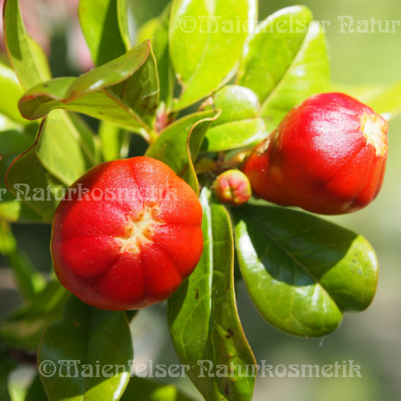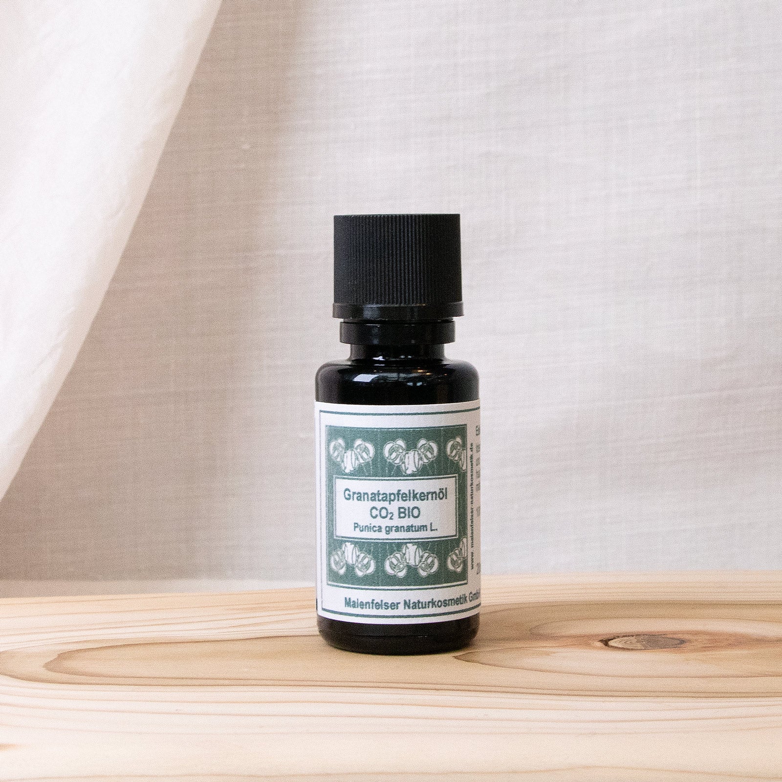 Der Granatapfelbaum kommt ursprünglich vor allem im südwestlichen Asien von der Türkei über den Iran, Syrien bis nach Indien vor. Heute sieht man ihn auch rund ums Mittelmeer. Die rote Frucht des Granatapfels beinhaltet zahlreiche erbsengrosse Samen mit roter Aussenschicht, die entweder kaltgepresst oder in CO2-Extraktion ein sehr wertvolles Öl ergeben. Das hellgelbe Öl hat einen lieblichen, leicht süßen Duft. Durch den hohen Anteil einer ungewöhnlich seltenen Ölsäure - der Pumicinsäure, die zu den mehrfach ungesättigten Fettsäuren (Omega 5) gezählt wird - zeigt das Granatapfelkernöl eine starke antioxidative Eigenschaft.