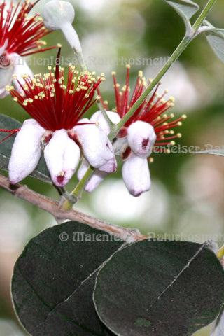 Die frischen Blätter der Guaven (Früchte) werden in Wasserdampf destilliert. Die Hauptinhaltsstoffe sind B-Caryophyllene, Alpha-Pinen und 1,8-Cineol. Das Öl zeigt antibakterielle und antimikrobielle Eigenschaften. Bei uns sind hauptsächlich die Früchte bekannt. Neueste Untersuchungen belegen auch interessante Ergebnisse des ätherischen Blätter-Öls, die eine Verwendung ähnlich der Melaleuca-Familie (Teebaum) nahe legen. Der Duft ist eher leicht, etwas blumig-fruchtig mit weihnachtlichen Gewürznoten. Sanft und warm.