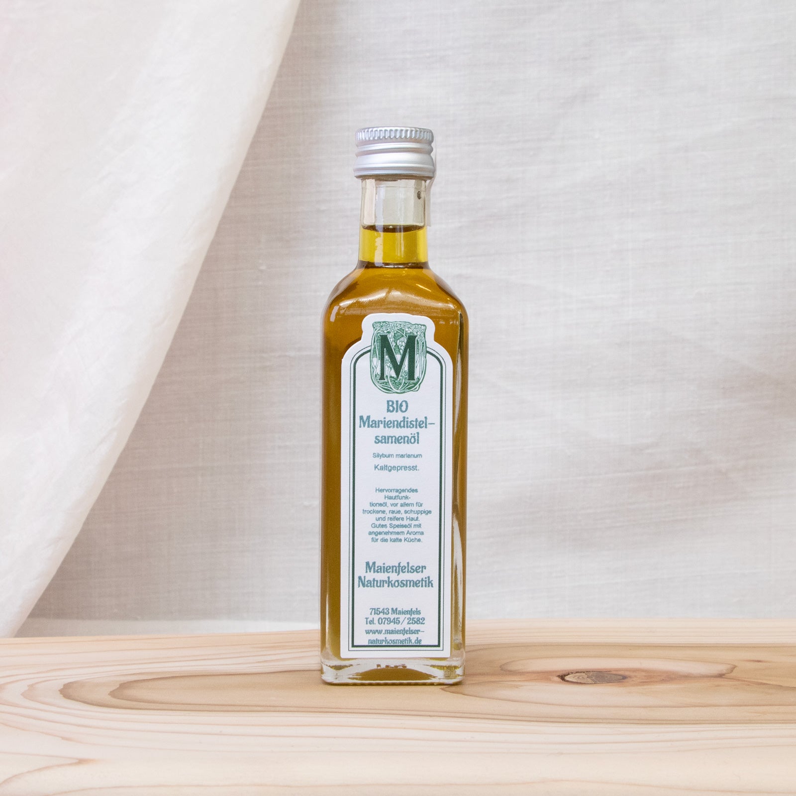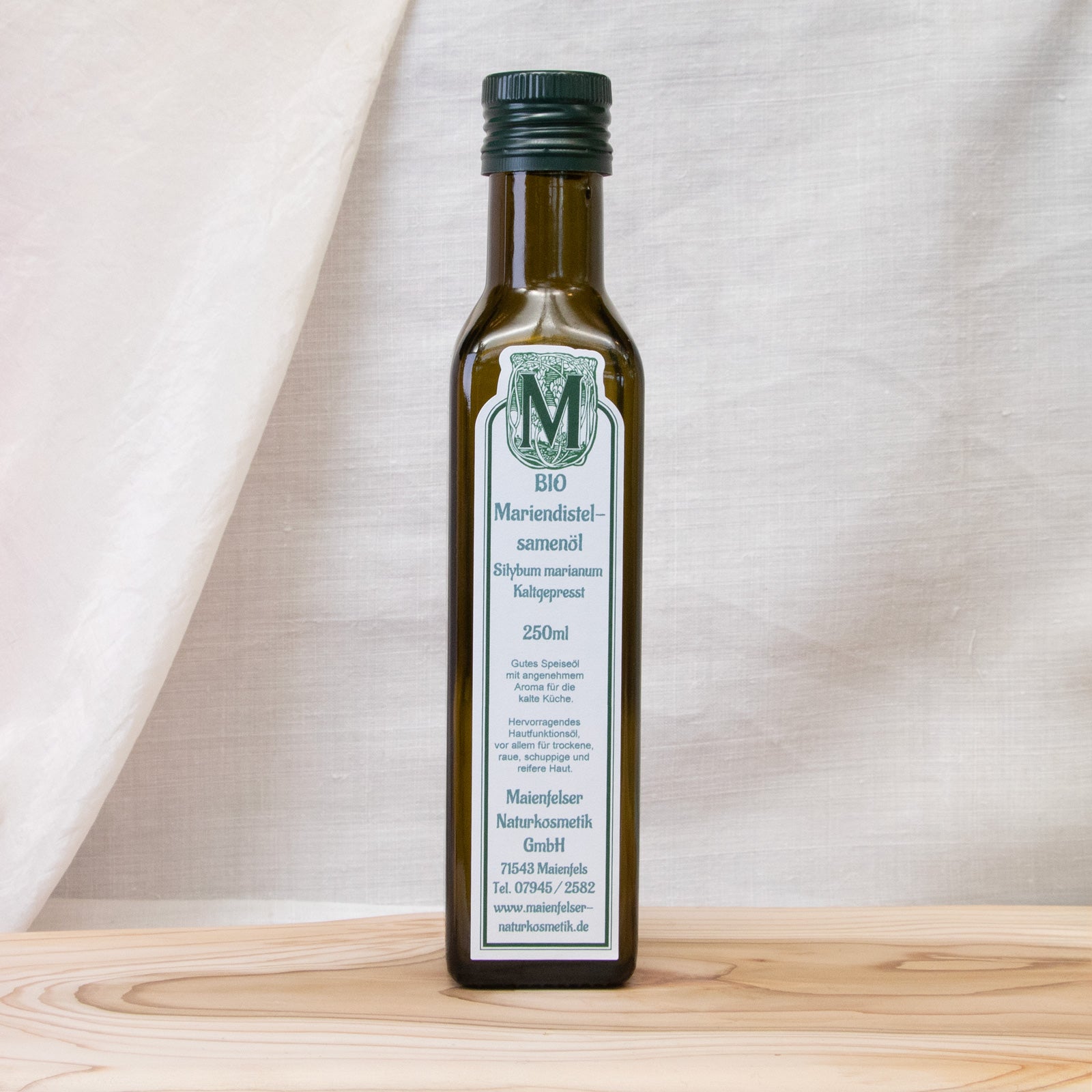 Kosmetische Verwendung: In der Naturheilkunde wird die Mariendistel als das Lebermittel Nr. 1 eingesetzt. Durch das aber nur im Presskuchen enthaltene Silymarin zählt es zu den wirksamsten Leberheilmitteln. Auch ohne nennenswerten Anteil von Silymarin ist das Öl in der Kosmetik hochgeschätzt. Durch die ungesättigten Fettsäuren kann man es gut in die Reihe der hervorragenden Hautfunktionsöle einordnen. Durch den hohen Anteil an Linolsäure ist es bestens für trockene, raue und schuppige Haut geeignet. Der Anteil an Palmitinsäure zeigt gute Pflegeeigenschaften bei reifer Haut, da sich mit zunehmendem Alter der in der Haut (Stratum Corneum) vorhandene Anteil an Palmitinsäure verringert. Die Palmitoleinsäure gilt als ausgesprochen verträglich und hautphysiologisch wertvoll.