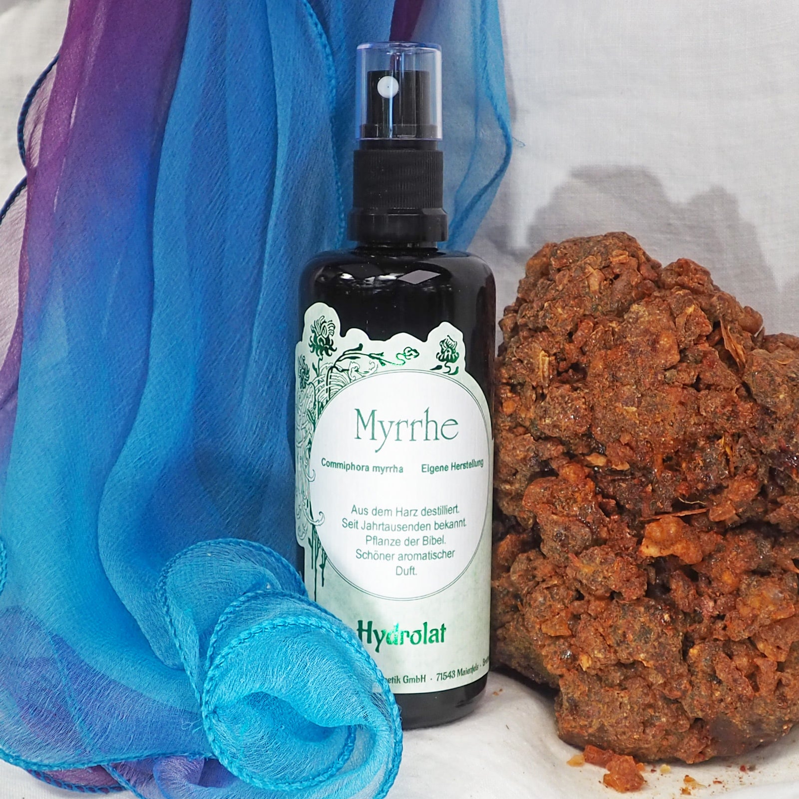 Eigene Destillation aus dem Myrrheharz. Bestandteil unseres Mundwassers. Schöner, balsamischer Duft mit aromatisch harzigen Noten.
