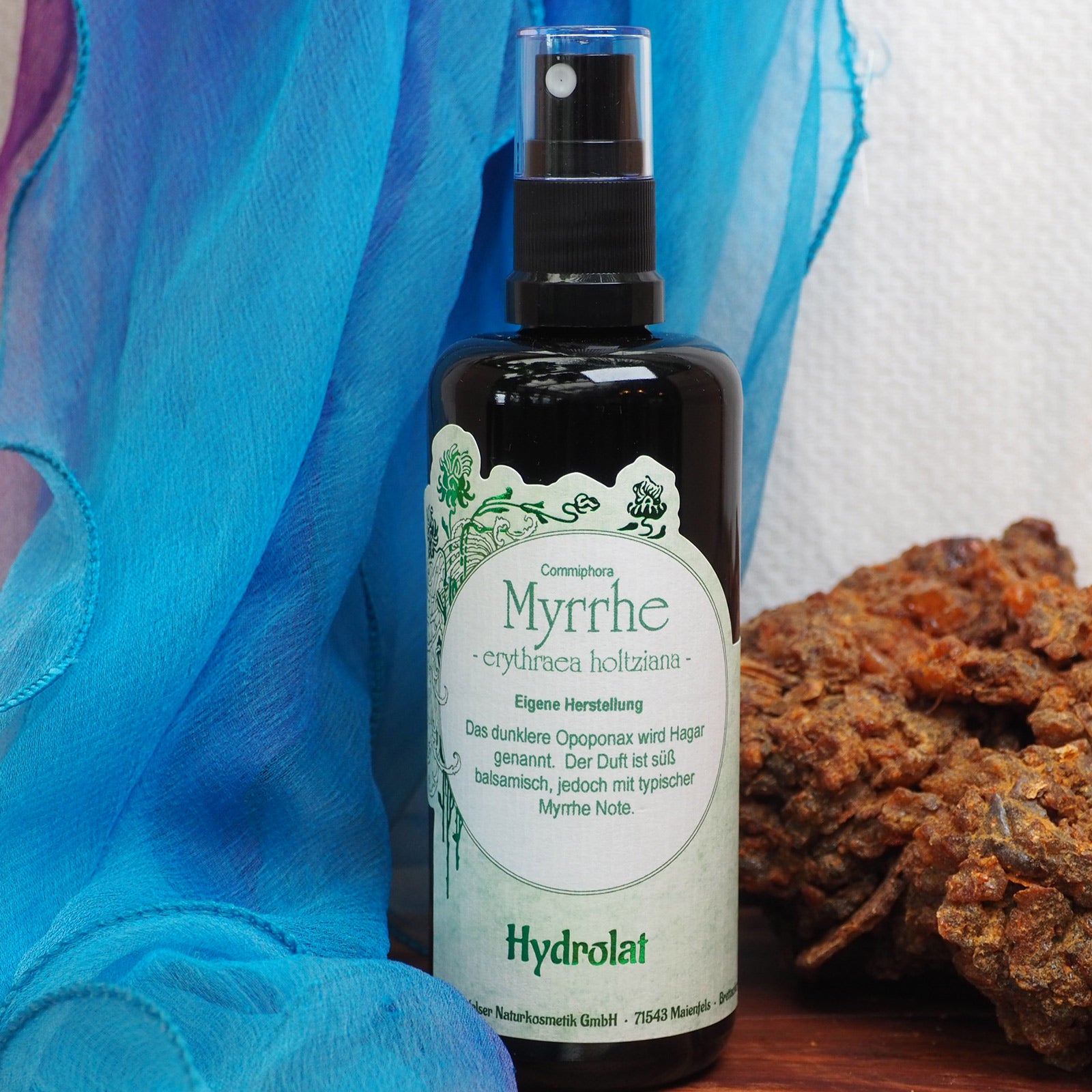 Unsere Dufteindrücke des Hydrolates: Der Duft ist süß balsamisch, jedoch mit typischer Myrrhe Note.