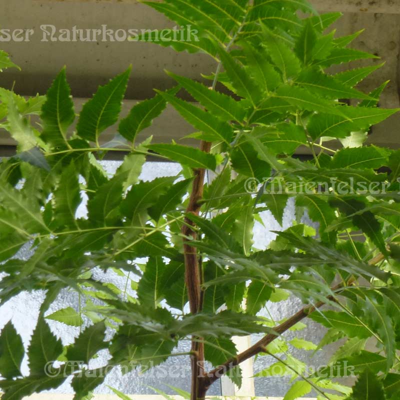 Ein kaltgepresstes Öl aus den Neem-Samen (Niem). In Indien ein Klassiker in der Ayurveda und zur Pflege bei problematischer Haut. Zur vorbeugenden Abwehrfunktion bei Bakterien, Viren, Pilzen, Insekten und Läusen (auch Kopfläuse). Hervorragend auch als Pflanzenschutzöl zur Abwehr von Frassinsekten.