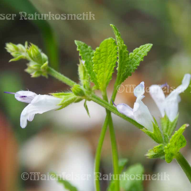 Sehr schöner schmalblättriger Salbei mit vielen kleinen blauen Blüten. Wächst hauptsächlich in Südafrika und ist bei der einheimischen Bevölkerung schon lange traditionell bekannt. Die Blätter werden ofmals als Zusatz im Tabak oder auch pur geraucht. Hauptinhaltsstoffe: Bisabolol, 3-Caren, Myrcen. Durch den hohen Anteil an Bisabolol (wie in der Kamille) mit seinen antibakteriellen und antiseptischen Eigenschaften bestens geeignet in Kosmetikprodukten.