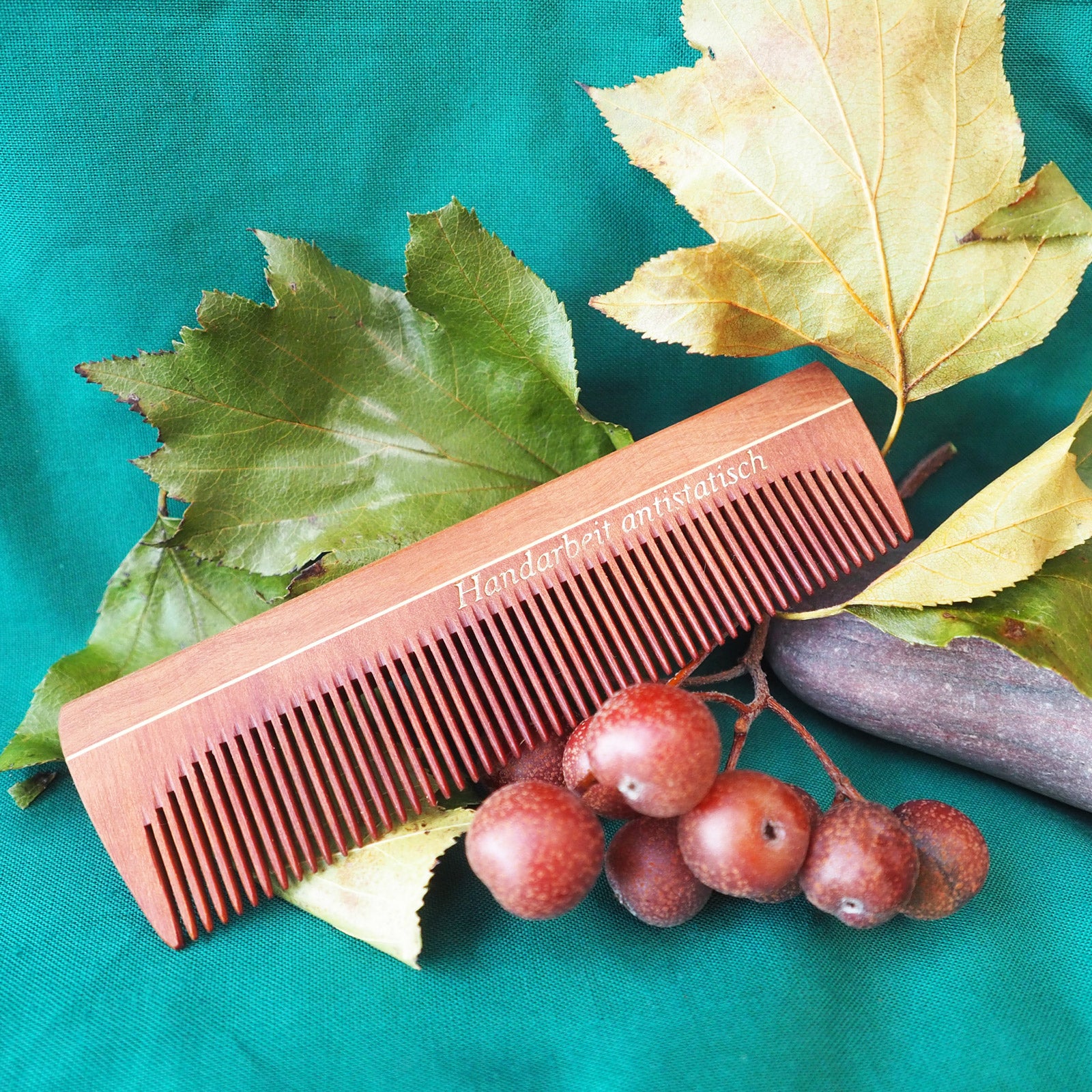 Durch den natürlichen Rohstoff Holz sind sie zudem antistatisch. Jeder Kamm wird aus heimischen Edelhölzern aus unserer Region hergestellt in echter Handarbeit eines kleinen Familienunternehmens, das wir gerne unterstützen.